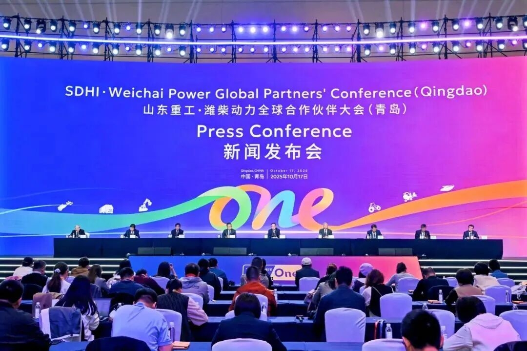 ??10月17日,在山东重工·潍柴动力全球合作伙伴大会启幕之前,山东重工集团举行新闻发布会,介绍全球合作伙伴大会筹备情况,就全球行业发展形势、国际化业务、产业链合作共赢、全新品牌战略等方面的新思考、新规划、新举措回答记者提问。山东重工集团党委副书记、总经理王志坚携权属企业高管团队、合作伙伴代表出席发布会。