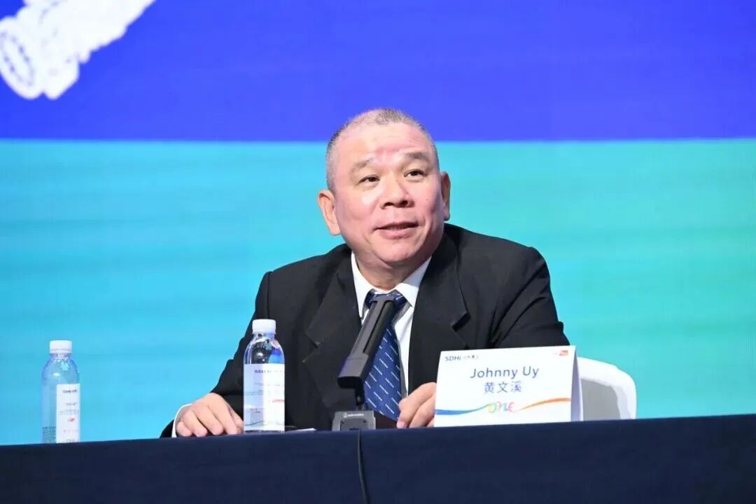 ??菲律宾高能时代股份有限公司董事长黄文溪回答香港文汇报记者提问。